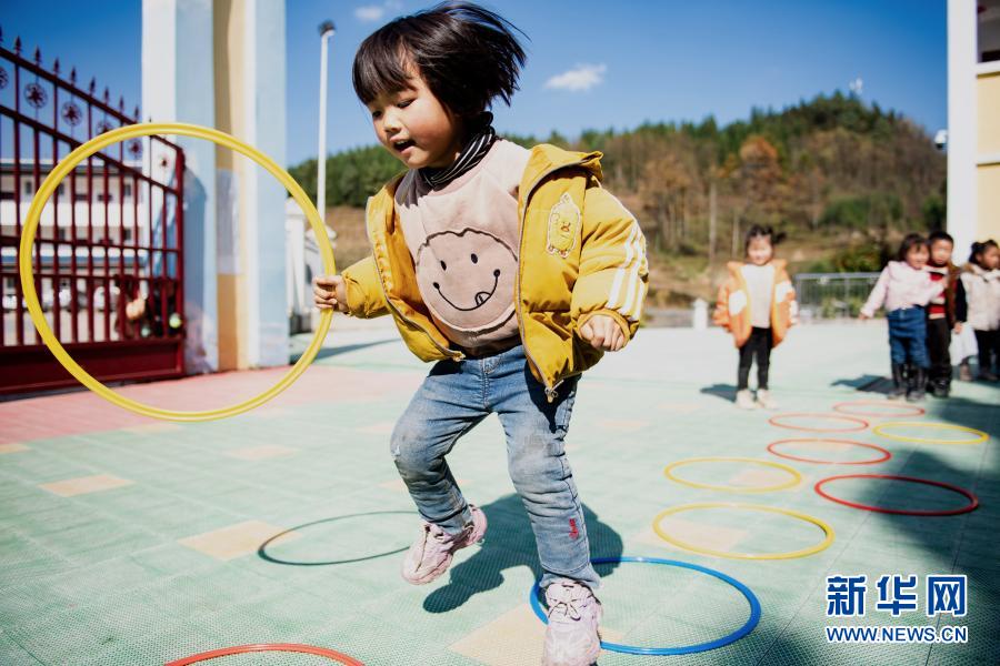 云南省鎮(zhèn)雄縣以古鎮(zhèn)巖洞腳村幼兒園的孩子在操場(chǎng)上玩耍(11月11日攝)。新華社記者 王冠森 攝