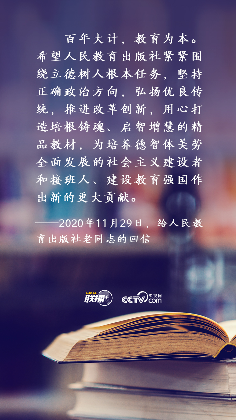 百年大計,教育為本。習(xí)近平總書記一貫高度重視培養(yǎng)社會主義建設(shè)者和接班人,不止一次對教材編研出版工作提出殷切期望。央視網(wǎng)《聯(lián)播+》為您梳理總書記有關(guān)精彩論述,與您一起學(xué)習(xí)領(lǐng)悟。