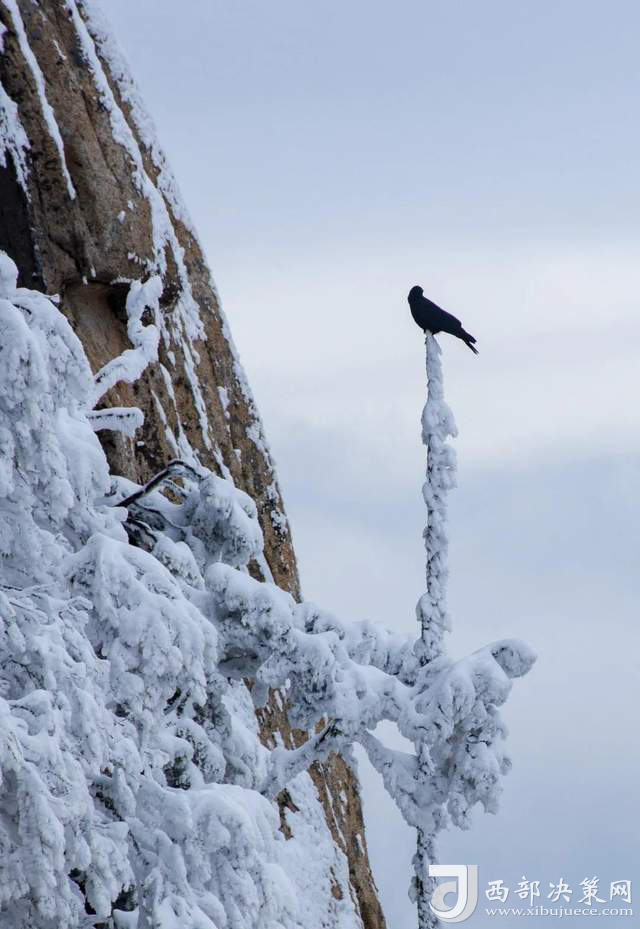 華山處處是無窮的魅力,正值冬季,寒風蕭蕭,到處是枯木落葉,而冬季的華山確有“雪海”、“雪松”、“冰掛”、“冰瀑”、“冰雕”等奇景。漫山飄雪中,偶然碰到一只動物,透出桀驁不馴的姿態(tài),欣賞雪景之余讓我們對這里更心生好奇。