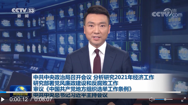 中共中央政治局12月11日召開會議,分析研究2021年經(jīng)濟(jì)工作;聽取中央紀(jì)委國家監(jiān)委工作匯報,研究部署2021年黨風(fēng)廉政建設(shè)和反腐敗工作;審議《中國共產(chǎn)黨地方組織選舉工作條例》。中共中央總書記習(xí)近平主持會議。