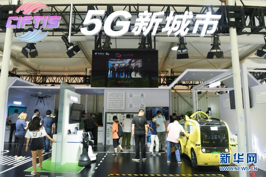9月7日,觀眾在2020年中國國際服務(wù)貿(mào)易交易會5G通信服務(wù)專題展區(qū)參觀。2020年中國國際服務(wù)貿(mào)易交易會9月4日至9日在北京舉行。新華社記者 魯鵬 攝
