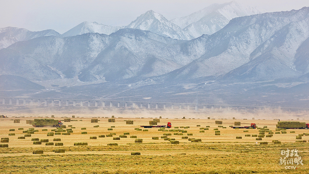△11月中旬,祁連山下山丹馬場20余萬畝燕麥草進(jìn)入收獲尾聲。各農(nóng)業(yè)單位人機(jī)齊上,確保顆粒歸倉、寸草歸垛。