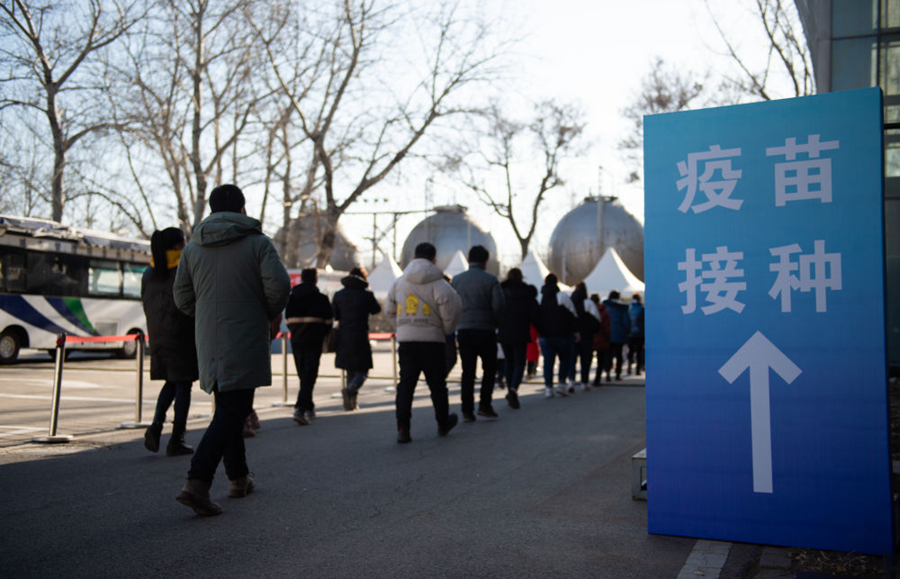 2021年1月5日,在北京,群眾排隊等待疫苗接種。新華社記者 陳鐘昊 攝