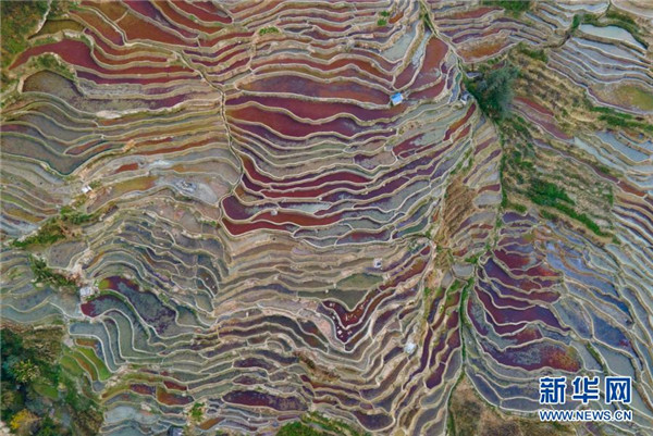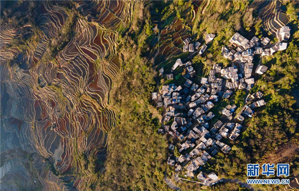 這是1月6日傍晚拍攝的哈尼梯田(無人機照片)。