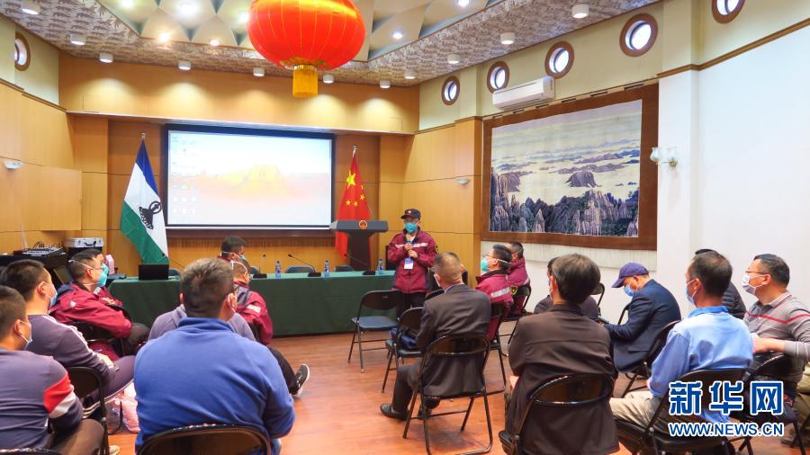 2020年10月3日,中國(guó)醫(yī)療專家組成員在萊索托馬塞盧舉辦疫情防控講座。應(yīng)萊索托政府邀請(qǐng),中國(guó)政府抗疫醫(yī)療專家組一行10人于9月27日至10月7日在萊索托開(kāi)展抗擊新冠疫情援助工作。新華社發(fā)(中國(guó)駐萊索托大使館供圖)