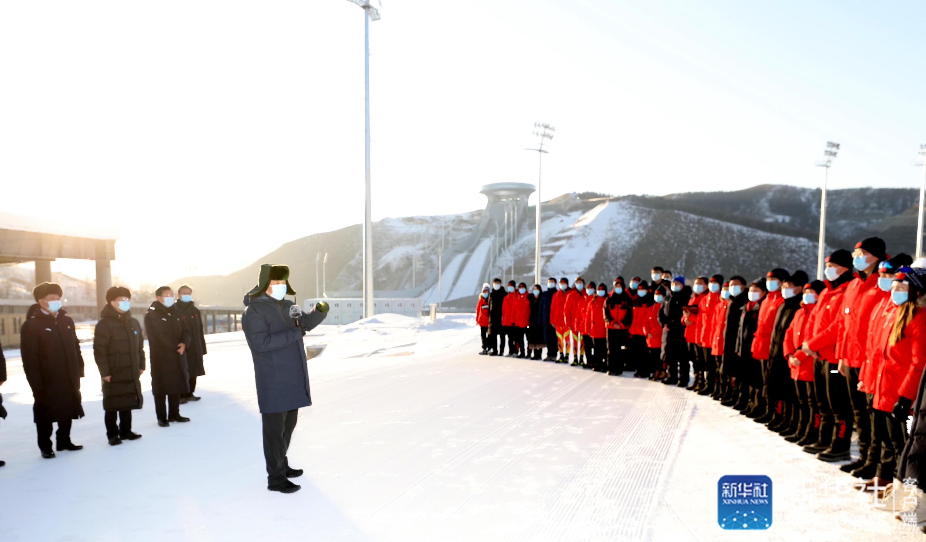 在國(guó)家冬季兩項(xiàng)中心看臺(tái),習(xí)近平觀看了冬季兩項(xiàng)越野滑雪和射擊運(yùn)動(dòng)員接力訓(xùn)練情況,并看望慰問(wèn)國(guó)家冬季兩項(xiàng)、跳臺(tái)滑雪隊(duì)運(yùn)動(dòng)員、教練員和張家口賽區(qū)運(yùn)行保障團(tuán)隊(duì)、建設(shè)者代表。習(xí)近平親切地對(duì)大家說(shuō),我這次來(lái)考察北京冬奧會(huì)、冬殘奧會(huì)籌辦情況,也是在牛年春節(jié)前來(lái)看望大家。大家都在為辦好一屆成功的冬奧盛會(huì)而努力,運(yùn)動(dòng)員在刻苦訓(xùn)練,建設(shè)單位和建設(shè)者、保障團(tuán)隊(duì)兢兢業(yè)業(yè),成功打造了一批世界一流的精品工程,大家的奮斗精神、奉獻(xiàn)精神令人感奮。習(xí)近平強(qiáng)調(diào),北京冬奧會(huì)、冬殘奧會(huì)所有場(chǎng)館建設(shè)提前一年完成,我國(guó)很多冰雪項(xiàng)目在兩年多時(shí)間里實(shí)現(xiàn)從無(wú)到有,有的項(xiàng)目達(dá)到了世界先進(jìn)水平,充分體現(xiàn)了黨的領(lǐng)導(dǎo)和舉國(guó)體制、集中力量辦大事的制度優(yōu)勢(shì)。