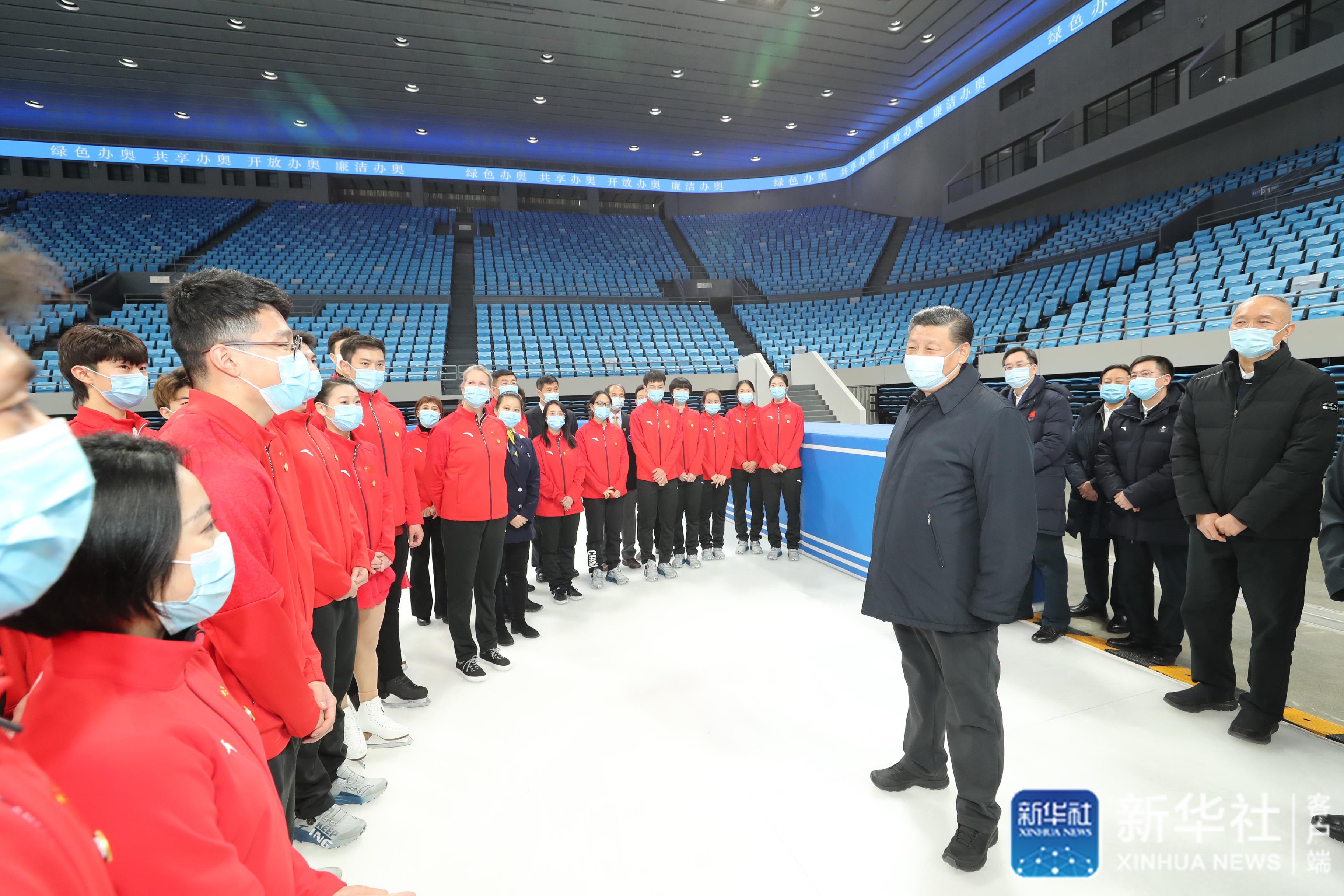 ↑1月18日至20日,中共中央總書記、國(guó)家主席、中央軍委主席習(xí)近平在北京、河北考察,并主持召開(kāi)北京2022年冬奧會(huì)和冬殘奧會(huì)籌辦工作匯報(bào)會(huì)。這是18日上午,習(xí)近平在位于北京市海淀區(qū)的首都體育館,同國(guó)家花樣滑冰隊(duì)和短道速滑隊(duì)運(yùn)動(dòng)員、教練員等親切交流。 新華社記者 王曄 攝