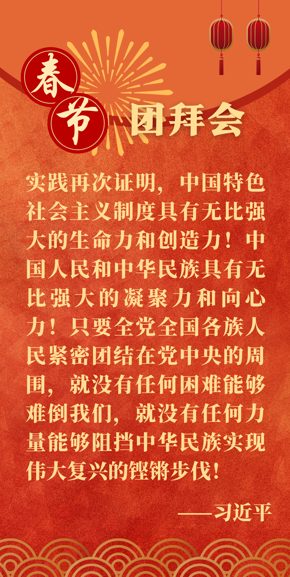 2月10日上午,中共中央、國務(wù)院在人民大會(huì)堂舉行2021年春節(jié)團(tuán)拜會(huì)。中共中央總書記、國家主席、中央軍委主席習(xí)近平發(fā)表講話,代表黨中央、國務(wù)院,向全國各族人民,向香港特別行政區(qū)同胞、澳門特別行政區(qū)同胞、臺(tái)灣同胞和海外僑胞拜年。