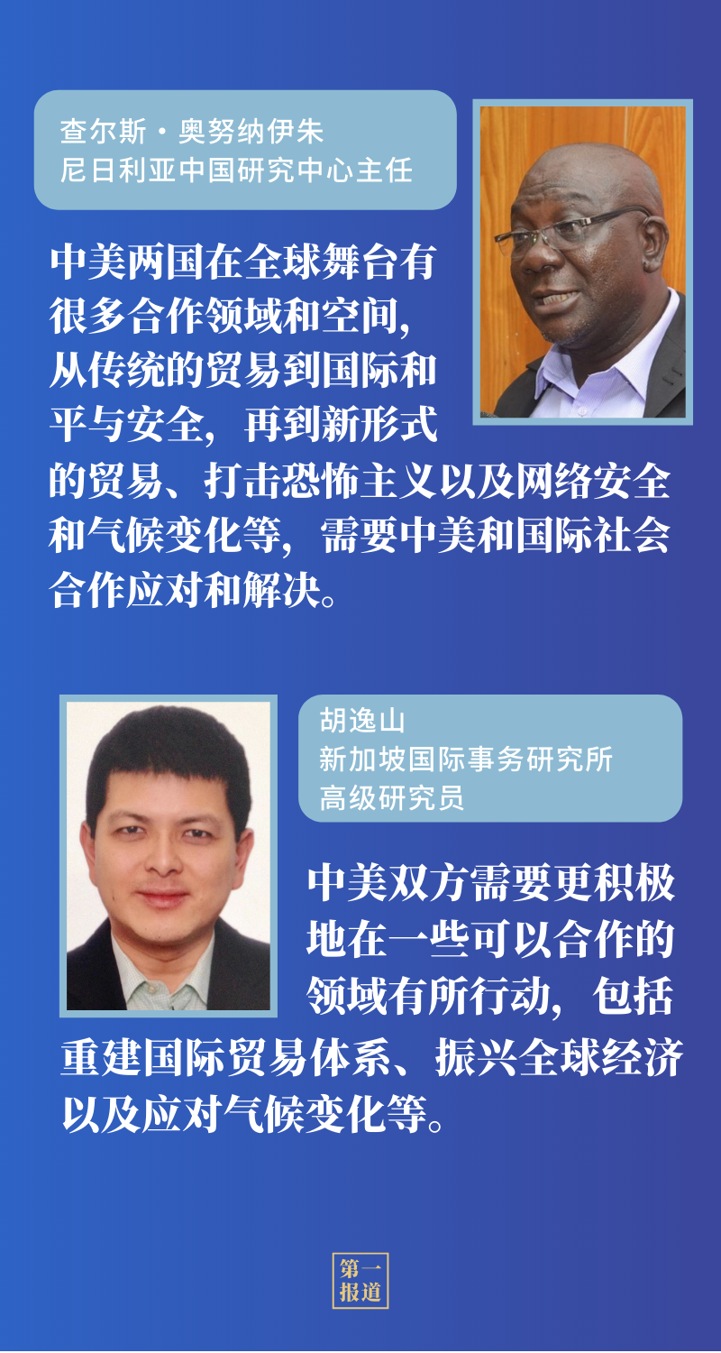 兩國元首都認(rèn)為,通話將向世界釋放積極信號(hào),雙方同意就中美關(guān)系和共同關(guān)心的問題保持密切聯(lián)系。