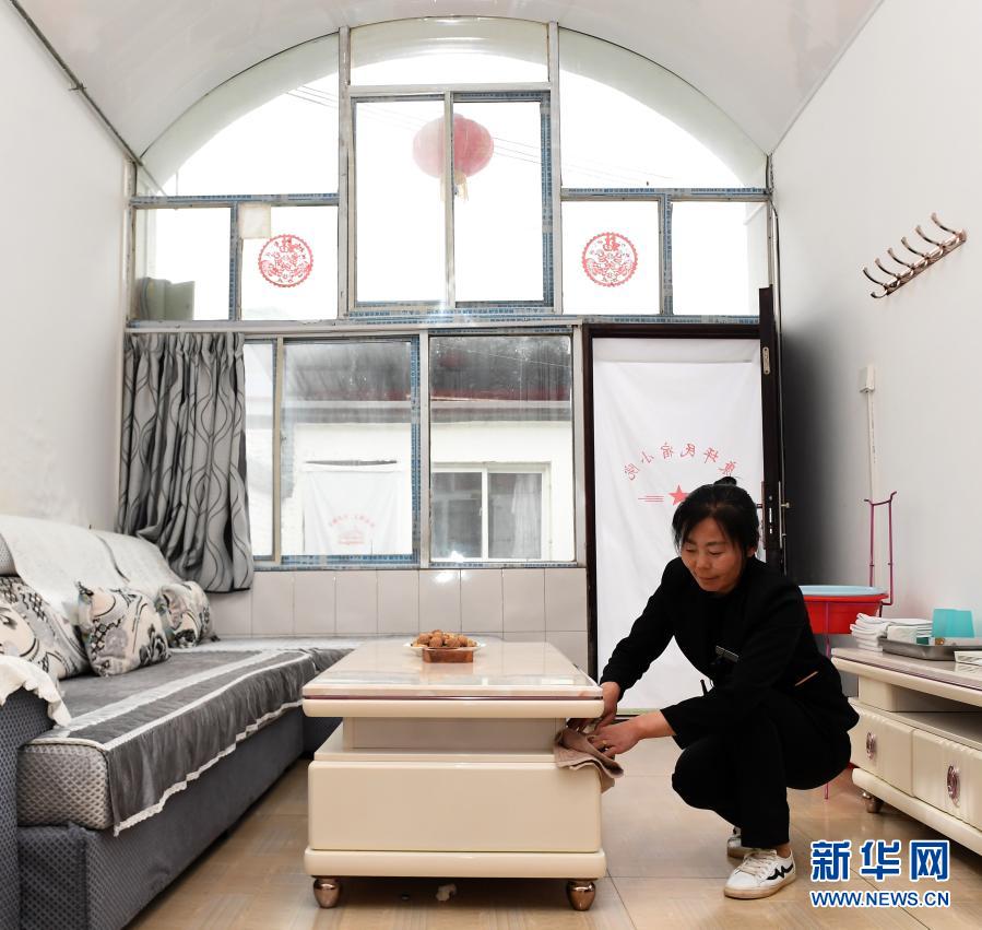 陜西延安寶塔區(qū)馮莊鄉(xiāng)康坪村的一個(gè)窯洞民宿里,員工在打掃房間(2019年5月6日攝)。新華社記者 劉瀟 攝