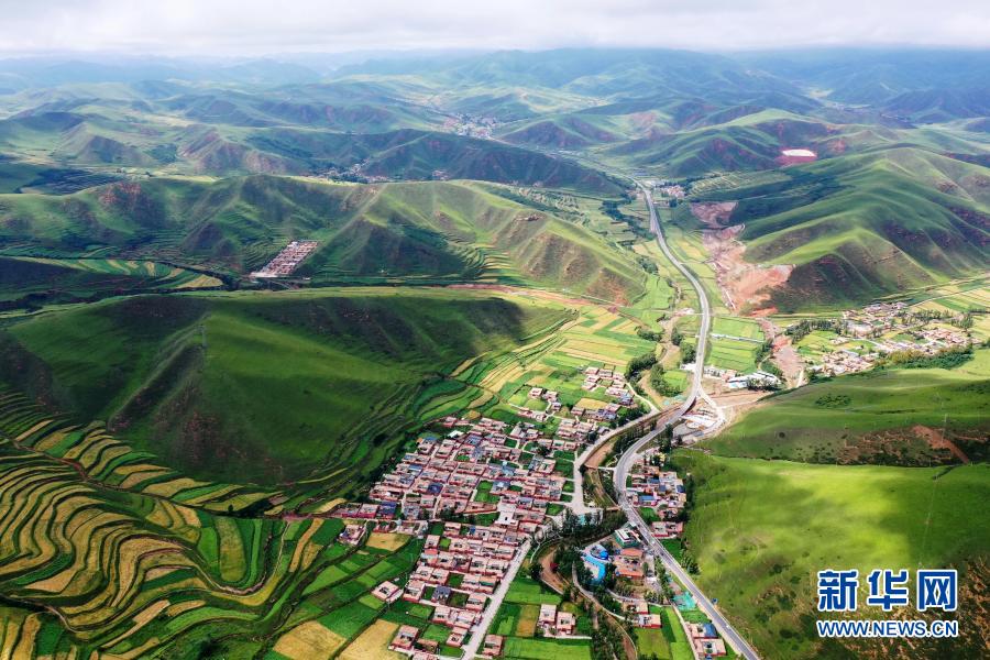 這是2020年8月12日拍攝的甘肅省甘南藏族自治州卓尼縣阿子灘鎮(zhèn)阿子灘村(無人機照片)。新華社記者 邢廣利 攝