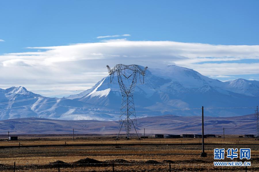 這是2020年11月29日在西藏阿里地區(qū)普蘭縣拍攝的西藏阿里與藏中電網聯(lián)網工程輸電鐵塔。新華社記者 詹彥 攝