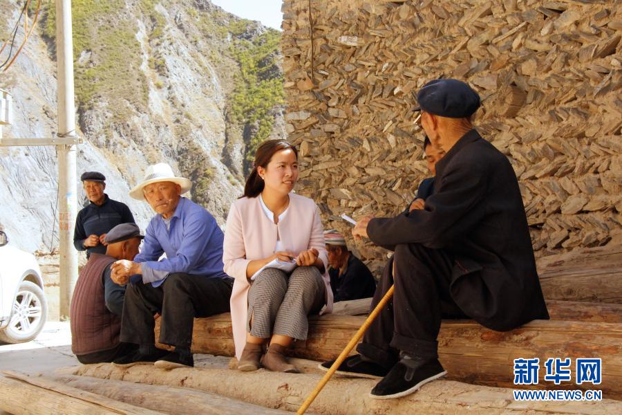 甘肅省甘南藏族自治州舟曲縣扶貧辦副主任張小娟(右二)在下鄉(xiāng)時向群眾了解情況(2018年4月攝)。2019年10月7日,時任縣扶貧辦副主任的張小娟在完成曲告納鎮(zhèn)上大年村脫貧攻堅縣級抽樣調查工作后,返程途中所乘車輛不慎墜江,因公殉職。新華社發(fā)