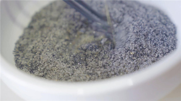 將炒熟的黑芝麻加入白砂糖放入研磨機(jī)。