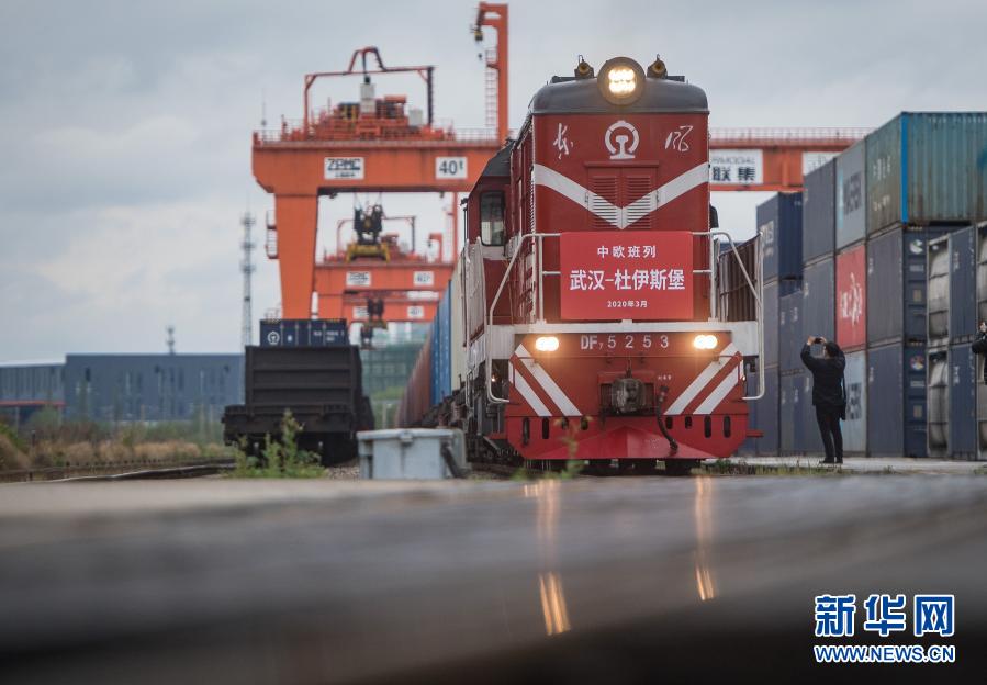 開往德國杜伊斯堡的中歐(武漢)班列從中鐵聯(lián)集武漢中心站駛出(2020年3月28日攝)。這是自疫情防控以來,從武漢開出的首趟中歐班列,標(biāo)志著中歐班列(武漢)恢復(fù)常態(tài)化運(yùn)營。新華社記者 肖藝九 攝