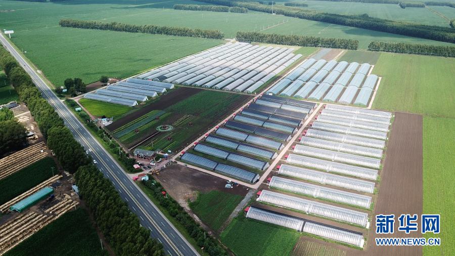 帶動(dòng)脫貧戶就業(yè)的黑龍江省肇東市黎明鎮(zhèn)甜嫂創(chuàng)意休閑農(nóng)業(yè)園區(qū)全貌(無人機(jī)照片,2020年7月6日攝)。新華社記者 王建威 攝