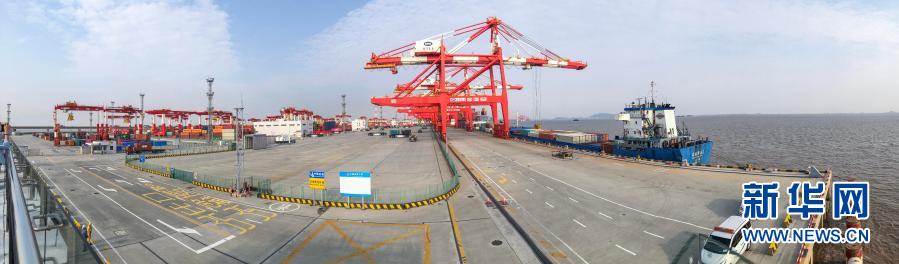 上海洋山港四期自動(dòng)化碼頭(全景照片,2020年5月28日攝)。新華社記者 張玉薇 攝