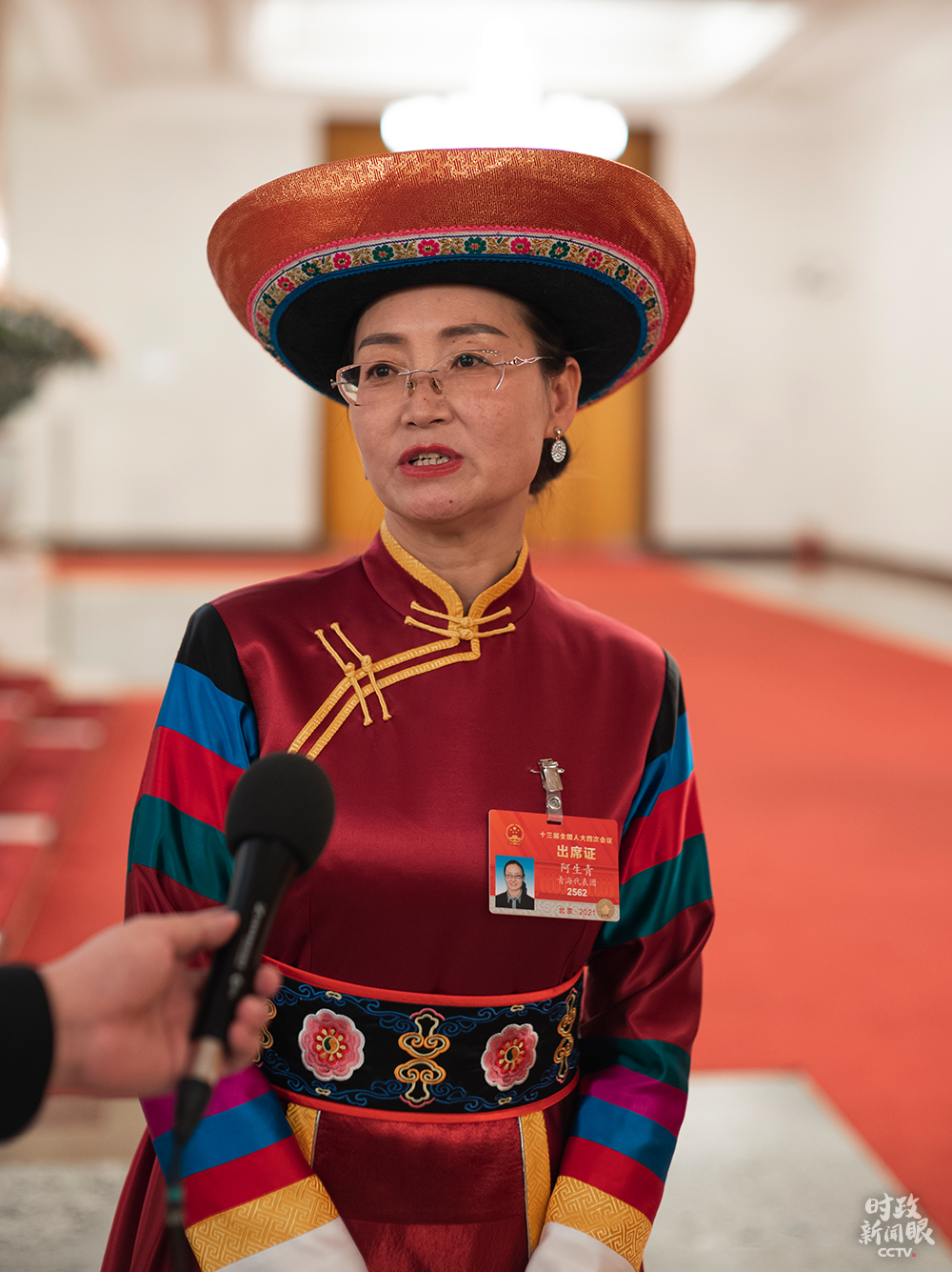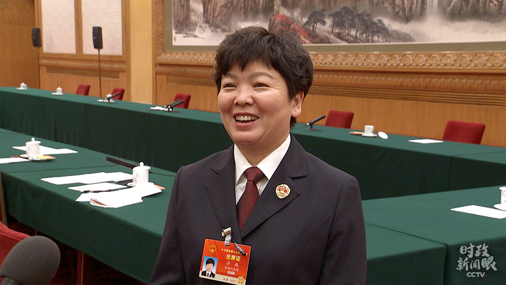 △沙沨代表在當(dāng)天的發(fā)言中,建議將基層治理以法治化手段實現(xiàn),一站式服務(wù)讓百姓少跑路。(總臺央視記者張曉鵬拍攝)