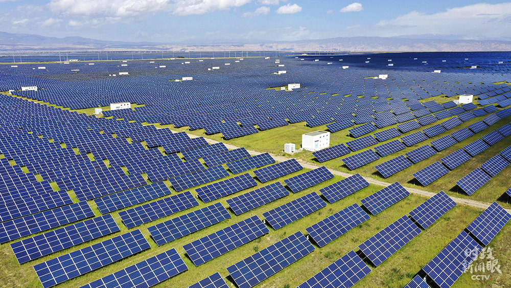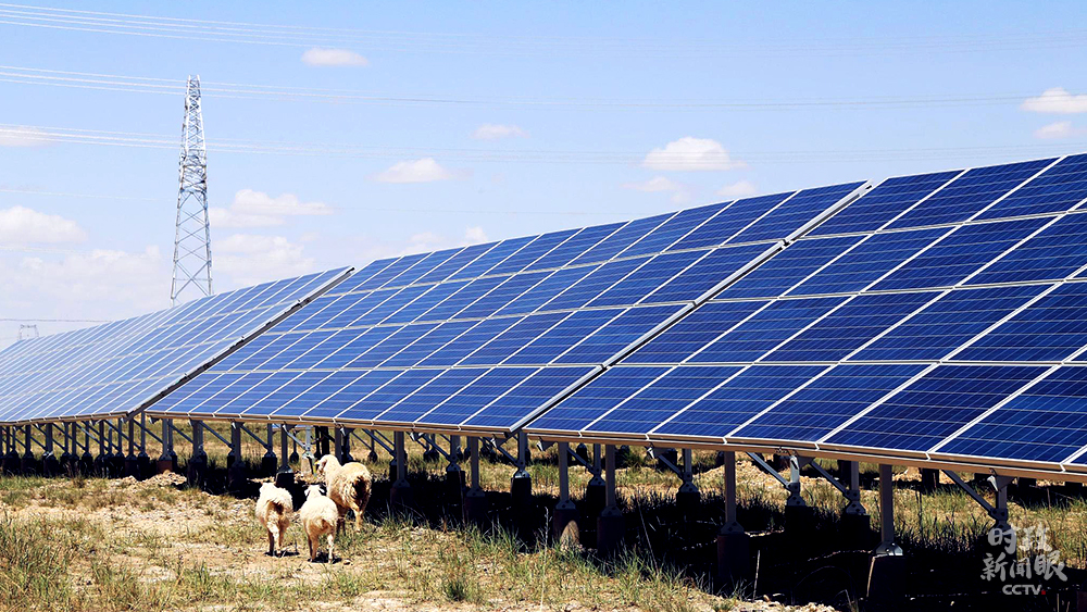 △這是位于青海省海南藏族自治州的塔拉灘光伏產(chǎn)業(yè)園區(qū)。在光伏板的“庇護(hù)”下,草場逐漸恢復(fù),羊群也回來了,經(jīng)濟(jì)和生態(tài)效益雙豐收。