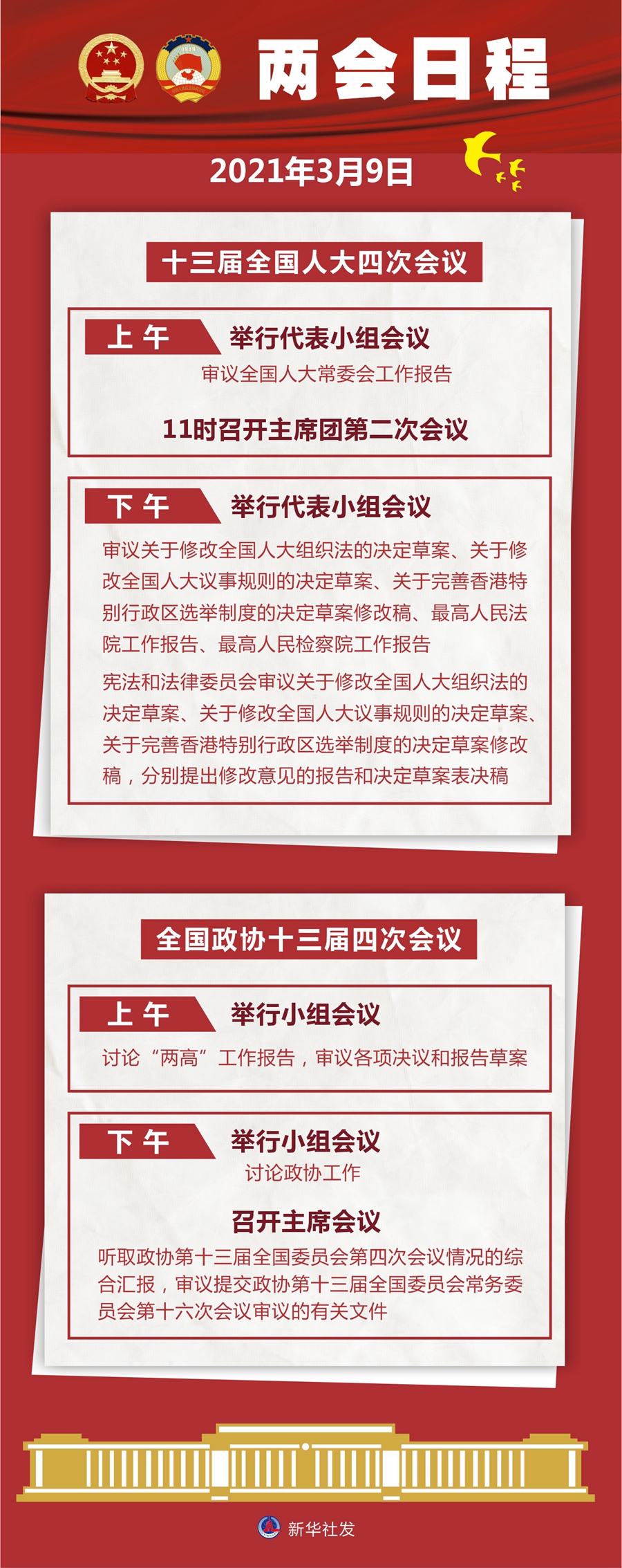 3月9日:人代會(huì)審議全國人大常委會(huì)工作報(bào)告等 政協(xié)舉行小組會(huì)議