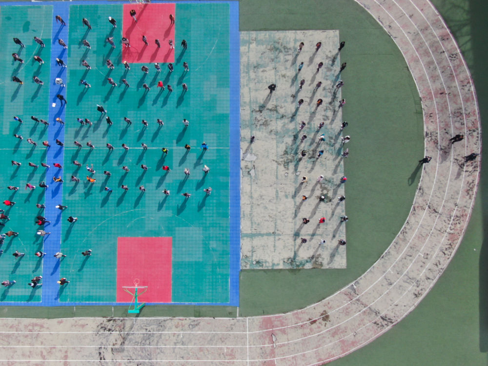 ↑ 在青海省玉樹藏族自治州八一孤兒學校,學生們在進行課間活動(2020年4月3日攝)。 新華社記者 張龍 攝