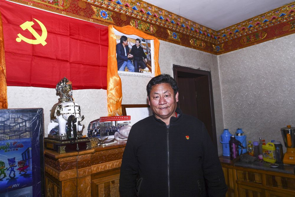 ↑ 尕瑪松保家的醒目位置懸掛著習近平與他的合影。