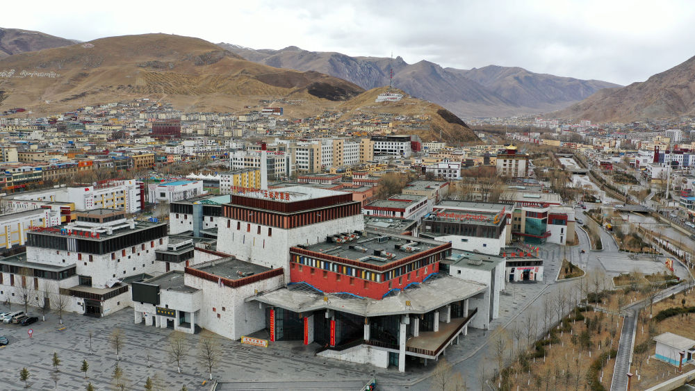 ↑ 圖為2021年3月10日拍攝的玉樹康巴藝術(shù)中心(玉樹地震前的結(jié)古鎮(zhèn)民族賓館)