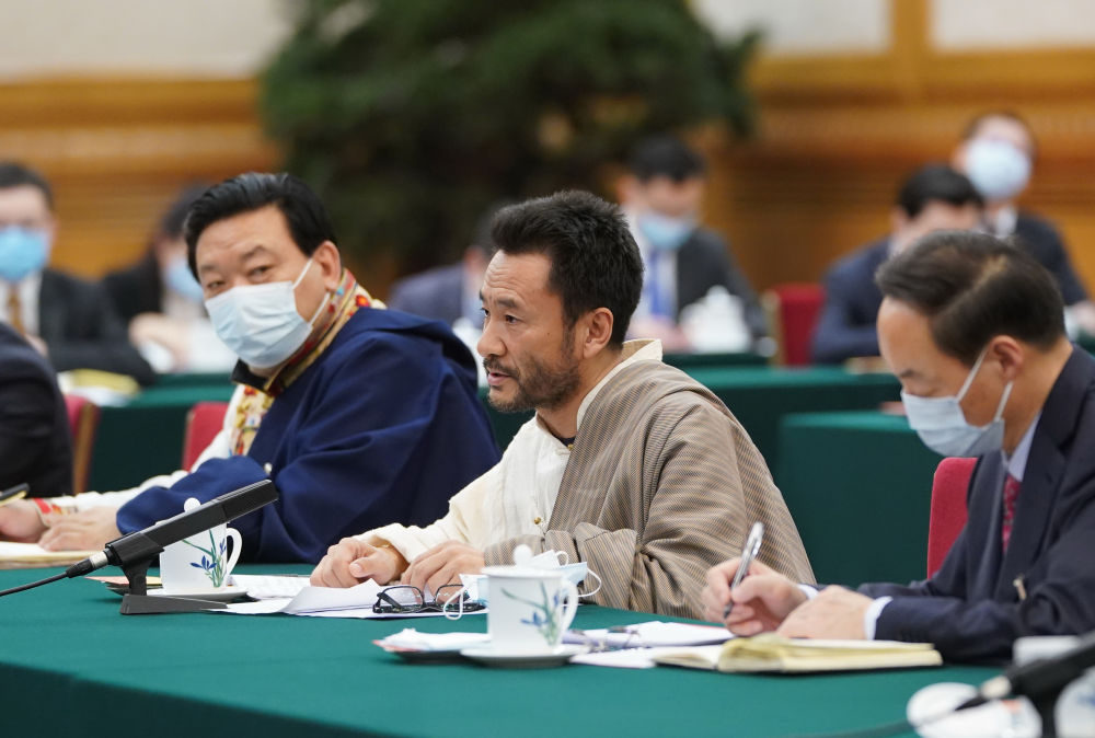 ↑ 3月7日,在參加十三屆全國人大四次會議青海代表團審議時,扎西多杰就玉樹災(zāi)后重建新變化發(fā)言。新華社記者李學仁攝
