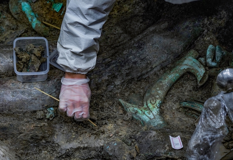 劉槃?wù)f,在初二時,她看了一本歷史探險科普書,書中主角是聯(lián)合國教科文組織的考古學者。那時候,她就在心中種下了一顆考古學的種子。心之所向,素履以往,在矢志不渝的堅持中與命運機緣的巧合下,劉槃進入了四川大學考古學專業(yè),從湖南來到了成都。劉槃曾經(jīng)以為,考古是“停橈問土風”般的工作,在這片廣袤的神州大地上,尋找著被歷史湮沒的古代文明。然而,正式接觸到考古以后,劉槃覺得這個行業(yè)更偏積累與腳踏實地。下野外是種積累,在長期的整理工作中更考驗的是扎實的功底。劉槃的老師告訴她,考古從業(yè)者一生中能遇上一個成果輝煌的考古發(fā)現(xiàn)是挺難的一件事,得看運氣。而劉槃是幸運的,正讀大四的她,目前正在此次世紀大發(fā)掘現(xiàn)場擔任記錄工作。劉槃所在的三號艙,有三個坑同時在發(fā)掘,擔任記錄員的她,在每一天的工作中都能接觸到不同的專家與學者,傾聽并記錄一些新現(xiàn)象、新方法,在這同時,她也吸收到很多新的知識,每一天都過得快樂而充實。