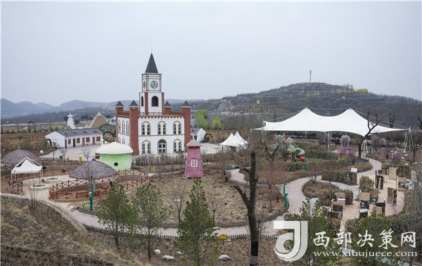 站在南溝村生態(tài)園最高處的觀景臺(tái)俯瞰景區(qū),紅色小樓錯(cuò)落有序、旁邊水庫綠水盈盈、遠(yuǎn)處山峰層層疊疊、成片的蘋果園劃出整齊的曲線,五顏六色的游樂設(shè)施裝點(diǎn)著黃土高原,讓人驚嘆山溝溝里竟然還有這樣養(yǎng)眼的好去處。