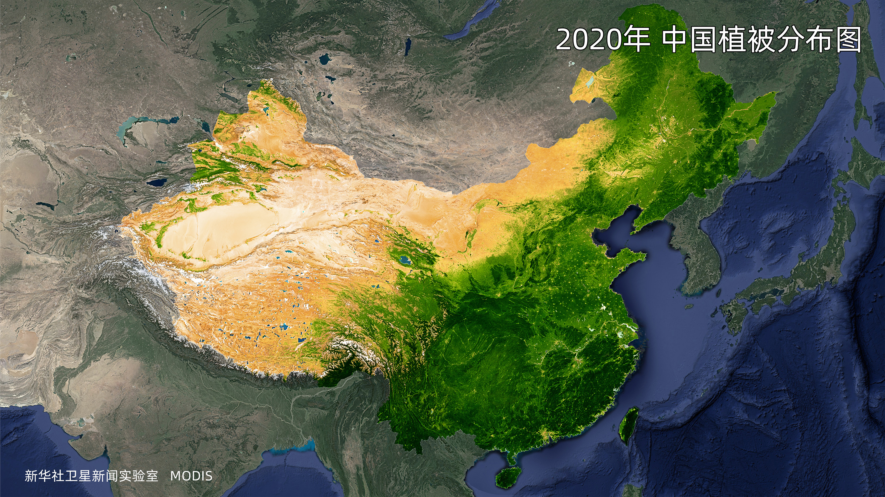 2020年中國植被分布圖。(數(shù)據(jù)來源:MODIS)