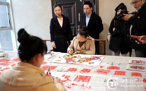 文物館邀請(qǐng)的民間藝術(shù)家現(xiàn)場(chǎng)剪紙、繪畫(huà) (中國(guó)臺(tái)灣網(wǎng) 李杰 攝)