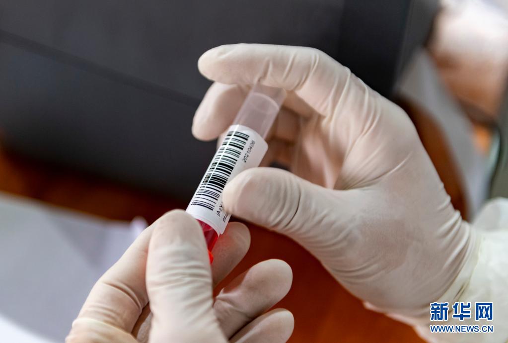 4月6日,在瑞麗市目瑙社區(qū)一核酸檢測點,醫(yī)務人員為核酸采樣管貼上標簽。新華社記者 陳欣波 攝