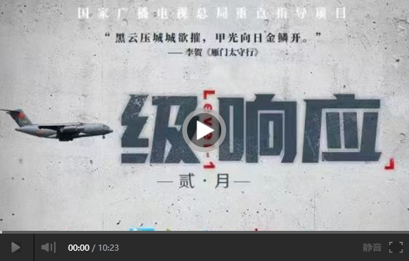 敬請(qǐng)收看由國(guó)家廣播電視總局重點(diǎn)指導(dǎo),上海廣播電視臺(tái)和湖北廣播電視臺(tái)聯(lián)合攝制的紀(jì)錄片《一級(jí)響應(yīng)》第二集《貳月》。