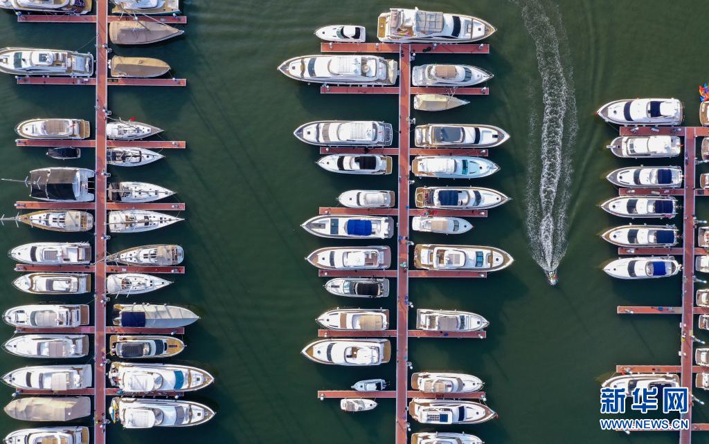 這是在三亞鴻洲國際游艇會碼頭??康挠瓮В?020年3月11日攝,無人機照片)。新華社記者 郭程 攝