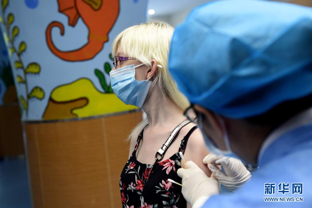 2021年5月12日,在合肥市一處新冠疫苗接種點,醫(yī)務人員為外籍人士接種疫苗。新華社記者 黃博涵 攝