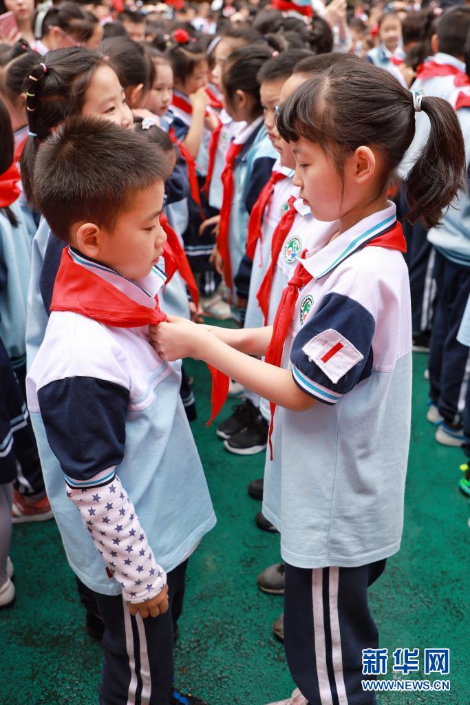 在“六一”兒童節(jié)來臨之際,貴陽市第二實驗小學(xué)宅吉校區(qū)的200多名一年級學(xué)生戴上紅領(lǐng)巾,光榮加入中國少年先鋒隊。
