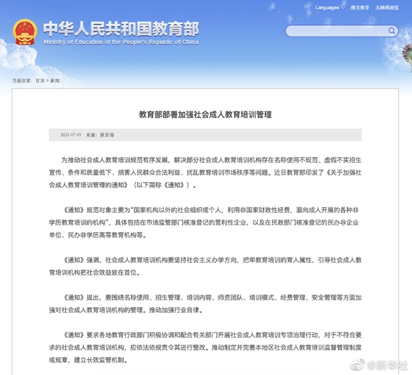 記者19日從教育部了解到,為推動社會成人教育培訓(xùn)規(guī)范有序發(fā)展,解決部分社會成人教育培訓(xùn)機(jī)構(gòu)存在名稱使用不規(guī)范、虛假不實(shí)招生宣傳、條件和質(zhì)量低下、損害人民群眾合法利益、擾亂教育培訓(xùn)市場秩序等問題,教育部近日印發(fā)《關(guān)于加強(qiáng)社會成人教育培訓(xùn)管理的通知》。通知強(qiáng)調(diào),要圍繞名稱使用、招生管理、培訓(xùn)內(nèi)容、師資團(tuán)隊、培訓(xùn)模式、經(jīng)費(fèi)管理、安全管理等方面加強(qiáng)對社會成人教育培訓(xùn)機(jī)構(gòu)的管理。通知要求各地教育行政部門積極協(xié)調(diào)和配合有關(guān)部門開展社會成人教育培訓(xùn)專項治理行動。(記者胡浩)