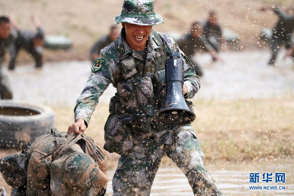 陸軍第76集團(tuán)軍某特戰(zhàn)旅特戰(zhàn)營營長劉近組織特戰(zhàn)隊員進(jìn)行泥潭摔擒訓(xùn)練(7月14日攝)。新華社記者張永進(jìn)攝