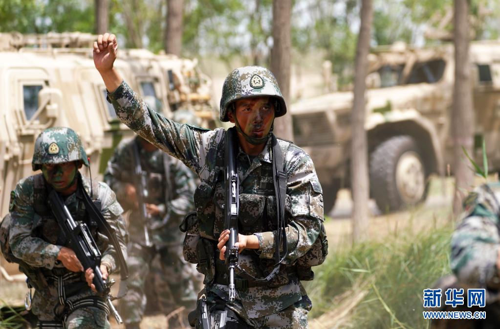 陸軍第76集團(tuán)軍某特戰(zhàn)旅特戰(zhàn)營營長劉近帶領(lǐng)特戰(zhàn)小隊進(jìn)行突擊清剿行動(7月14日攝)。新華社記者張永進(jìn)攝