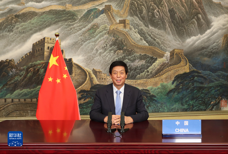 全國人大常委會委員長栗戰(zhàn)書7日在第五次世界議長大會發(fā)表視頻致辭。