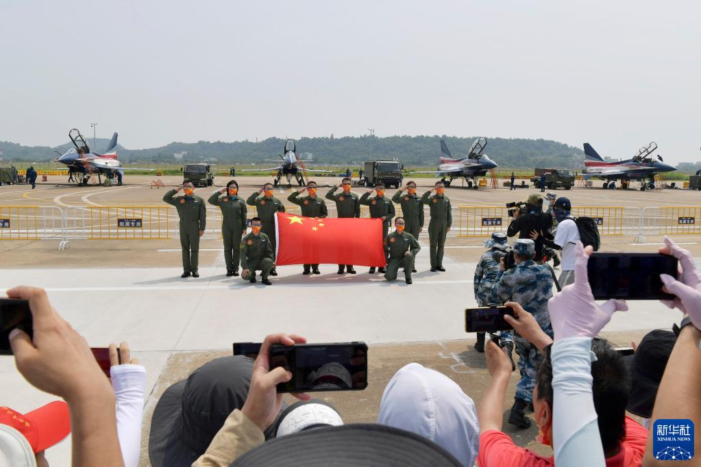 中國航展現(xiàn)場(chǎng),五星紅旗隨處可見,成為全場(chǎng)最鮮艷的顏色。藍(lán)天之上,戰(zhàn)鷹向祖國報(bào)告:空軍官兵堅(jiān)決捍衛(wèi)國家主權(quán),堅(jiān)決捍衛(wèi)祖國統(tǒng)一,堅(jiān)定維護(hù)世界和平。 新華社記者劉濟(jì)美、高玉嬌、劉一諾