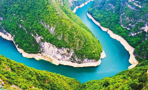 近年來(lái),長(zhǎng)江重慶段生態(tài)環(huán)境持續(xù)改善。圖為位于長(zhǎng)江支流大寧河流域重慶市巫山縣小三峽滴翠峽的魚頭灣。 新華社記者 王全超攝