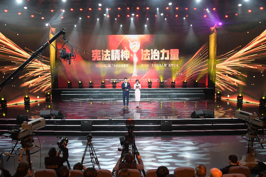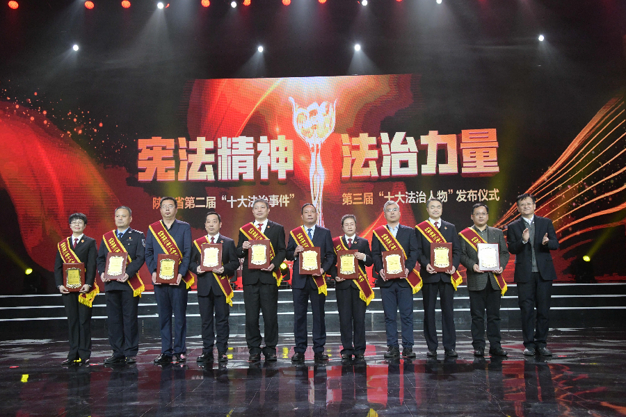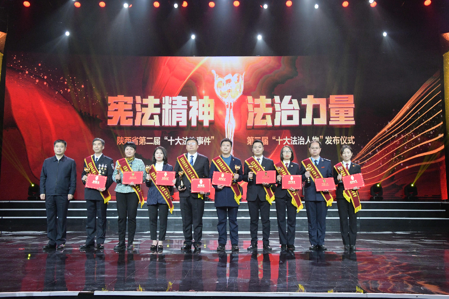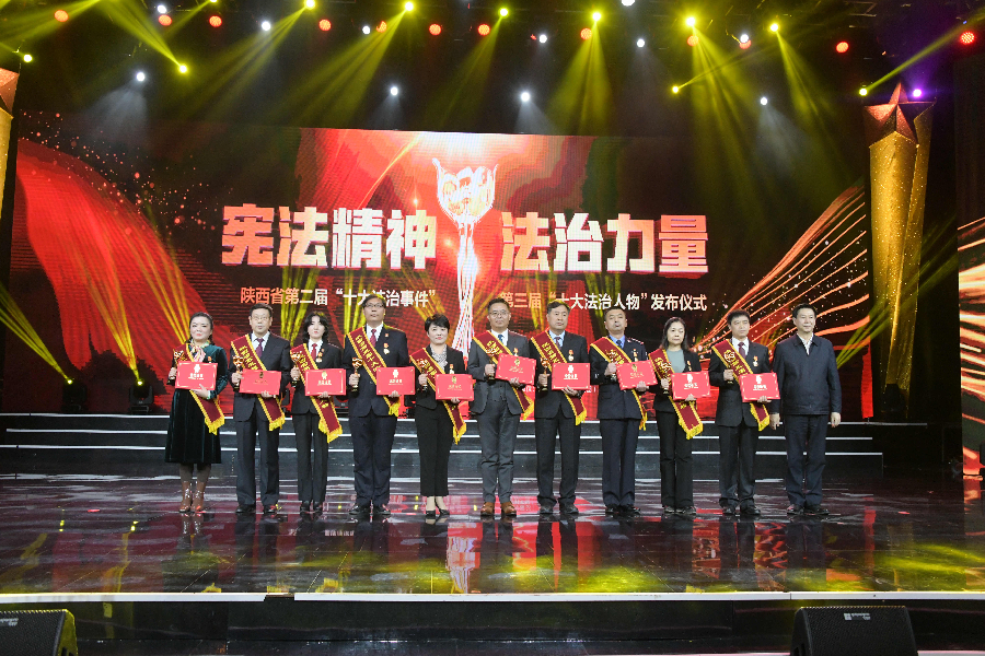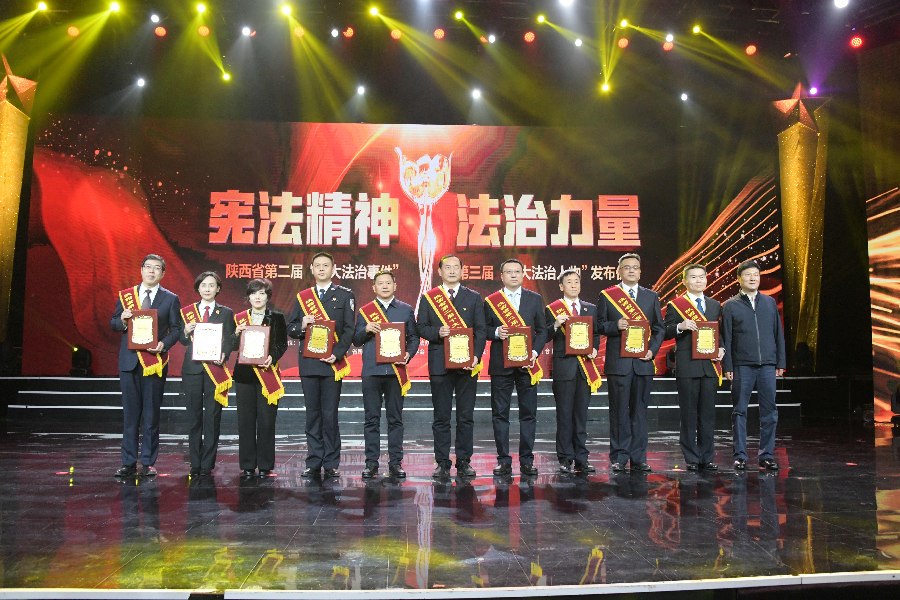 發(fā)布儀式現(xiàn)場(chǎng)播放了“十大法治事件”“十大法治人物”及提名獎(jiǎng)的先進(jìn)事跡短片,揭曉了陜西省第二屆“十大法治事件”、第三屆“十大法治人物”及提名獎(jiǎng)獲得者。“全國(guó)首創(chuàng)黨委(黨組)書記點(diǎn)評(píng)法治工作機(jī)制切實(shí)夯實(shí)‘一把手’履行法治建設(shè)責(zé)任”等10個(gè)事件被評(píng)為第二屆“十大法治事件”、“陜西出臺(tái)自由貿(mào)易試驗(yàn)區(qū)條例助推自貿(mào)區(qū)高質(zhì)量發(fā)展”等10個(gè)事件被評(píng)為第二屆“十大法治事件”提名獎(jiǎng),西安交通大學(xué)法學(xué)院二級(jí)教授馬治國(guó)等10名同志被評(píng)為第三屆“十大法治人物”、咸陽(yáng)市中級(jí)人民法院速裁中心主任李春麗等10名同志被評(píng)為第三屆“十大法治人物”提名獎(jiǎng)。
