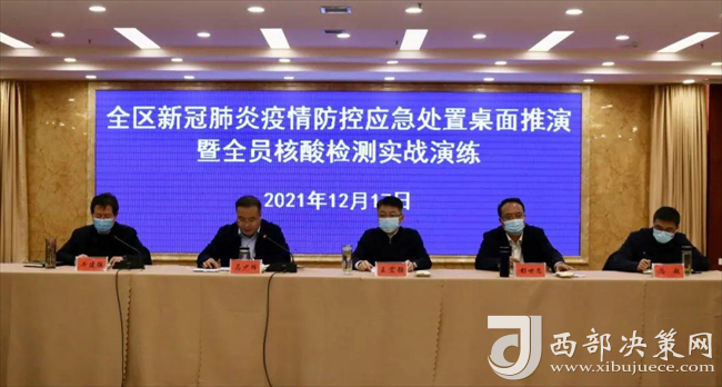 西部決策網(wǎng)訊(韓宗憲 通訊員 陳珊珊)12月17日,寶雞市鳳翔區(qū)新冠肺炎疫情防控應(yīng)急處置桌面推演暨全員核酸檢測實戰(zhàn)演練在白玉蘭酒店舉行。鳳翔區(qū)疫情防控專班、區(qū)疫情防控相關(guān)部門、各鎮(zhèn)、區(qū)流行病學(xué)調(diào)查組各成員單位等參加演練。區(qū)委區(qū)政府主要領(lǐng)導(dǎo)現(xiàn)場觀摩了本次實戰(zhàn)演練。