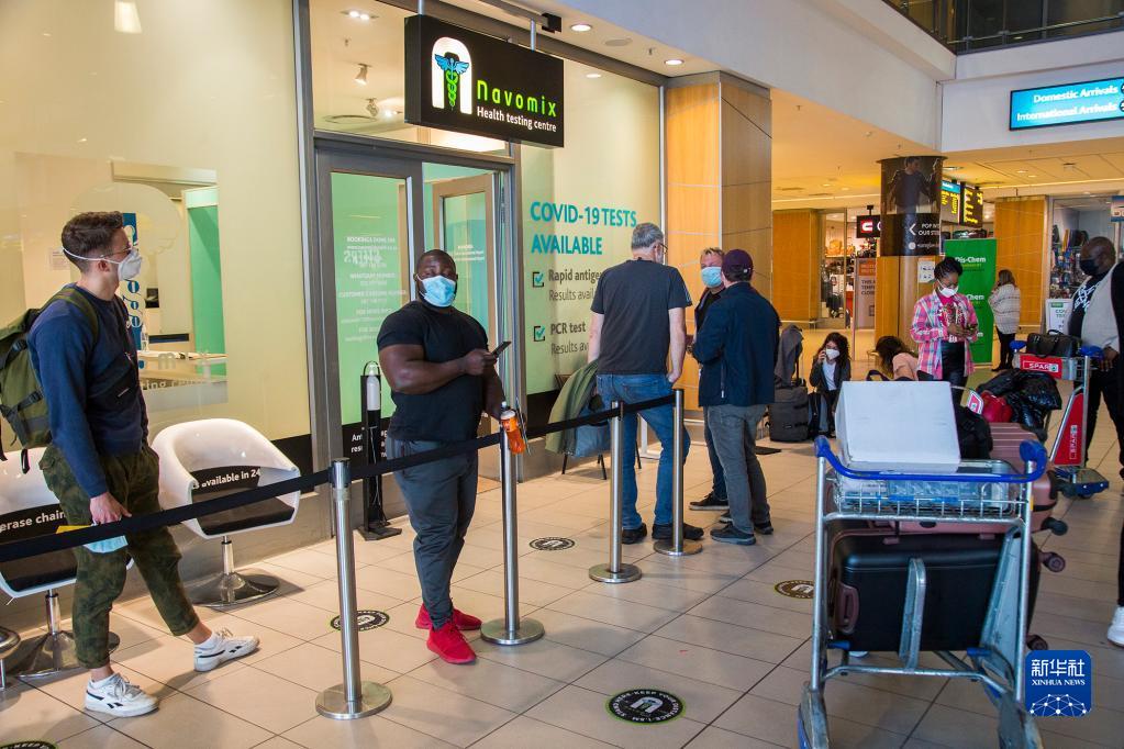 旅客在南非開普敦國際機(jī)場等待接受新冠病毒檢測(2021年11月29日攝)。為防范新冠變異病毒奧密克戎毒株傳播,多國對南非等非洲國家的航班和旅客實(shí)施入境限制,并升級防控措施。新華社發(fā)(弗克攝)