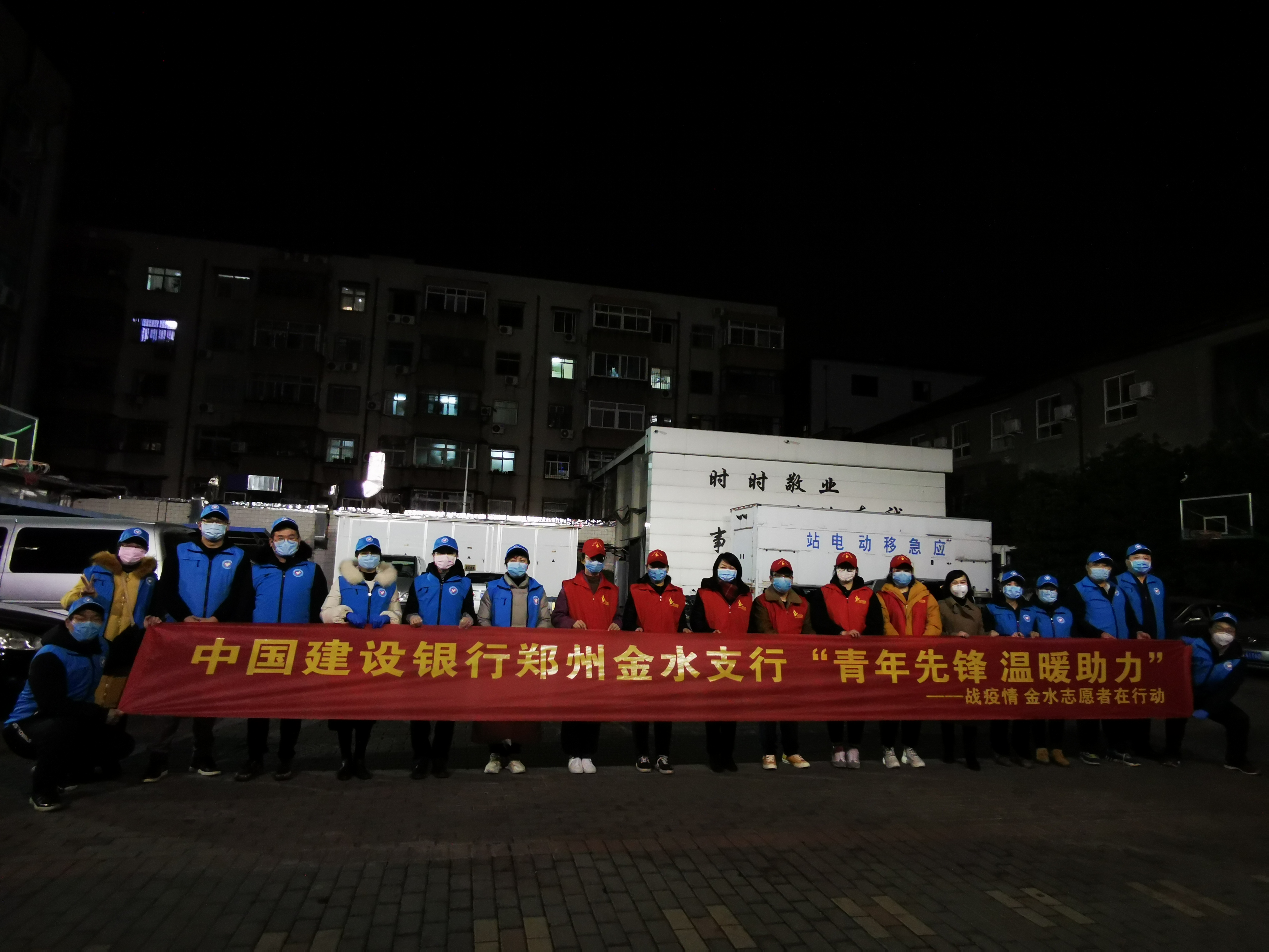 2020鼠年歲首,新冠疫情暴發(fā)。在黨中央和上級行堅強領導下,鄭州金水支行迅速投入了全民抗疫之戰(zhàn),立即成立了由團委掛帥的“藍馬甲”青年志愿抗疫先鋒隊,短短數(shù)日內(nèi)報名逾350人,連續(xù)近50天持續(xù)組織志愿者開展醫(yī)護人員家庭物資配送、社區(qū)戰(zhàn)疫支援、愛心夜宵送達等任務,有力地為抗疫大局做出了貢獻。