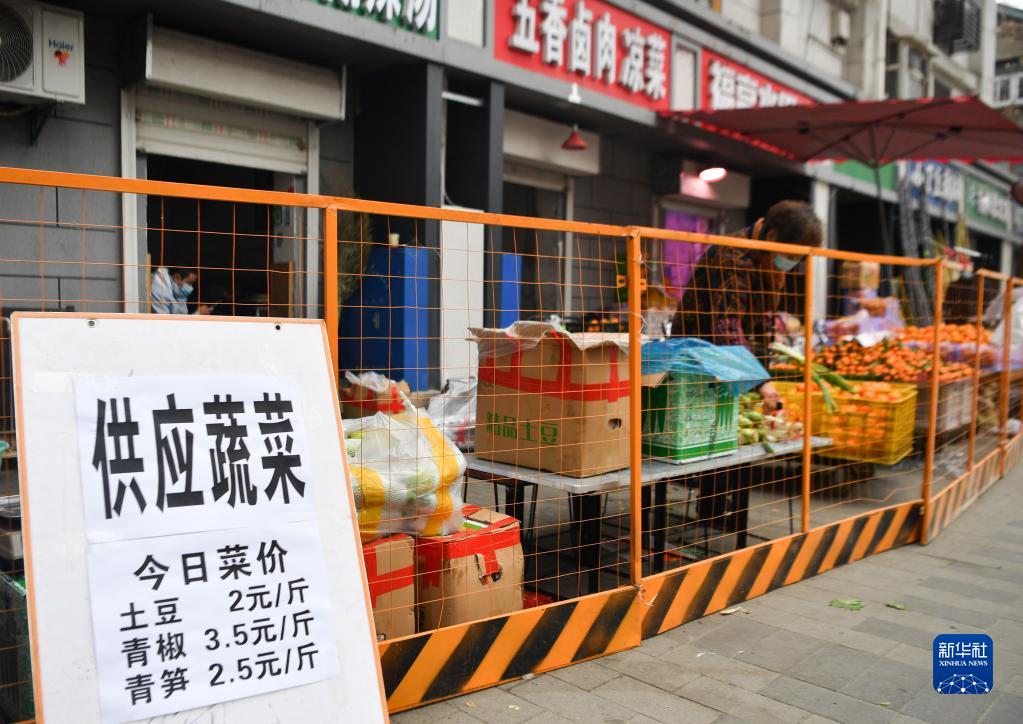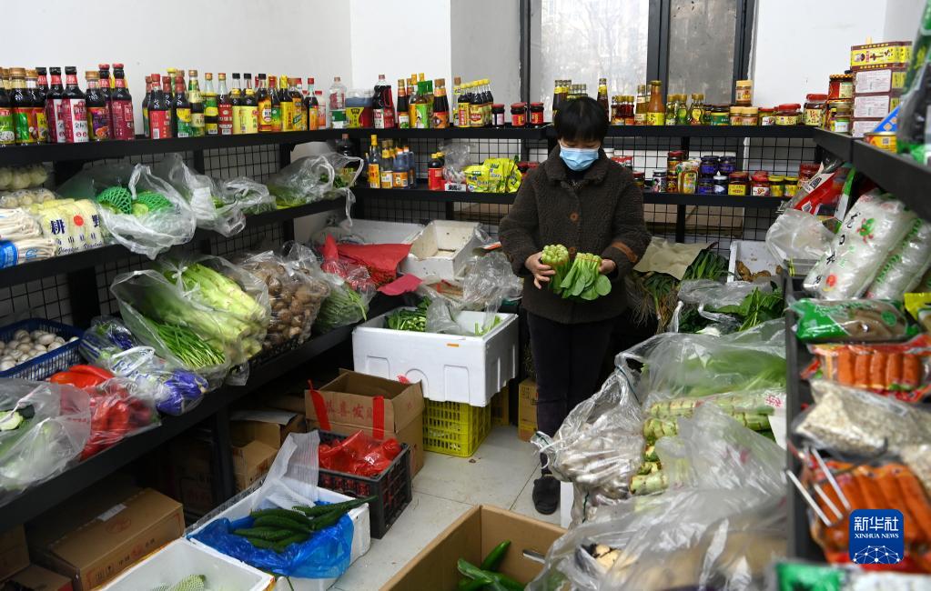 12月23日,西安市新城區(qū)一小區(qū)住戶在小區(qū)超市買菜。新華社記者 劉瀟 攝