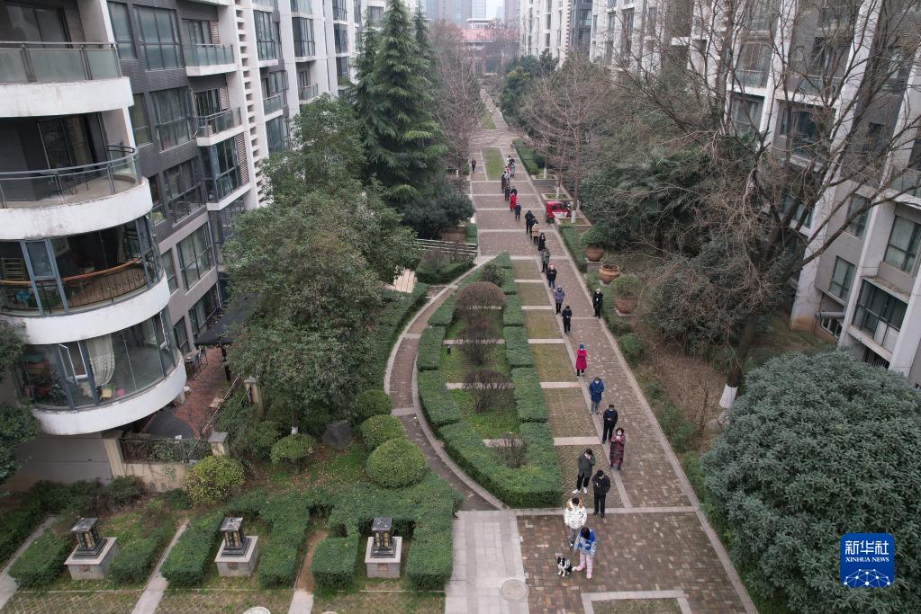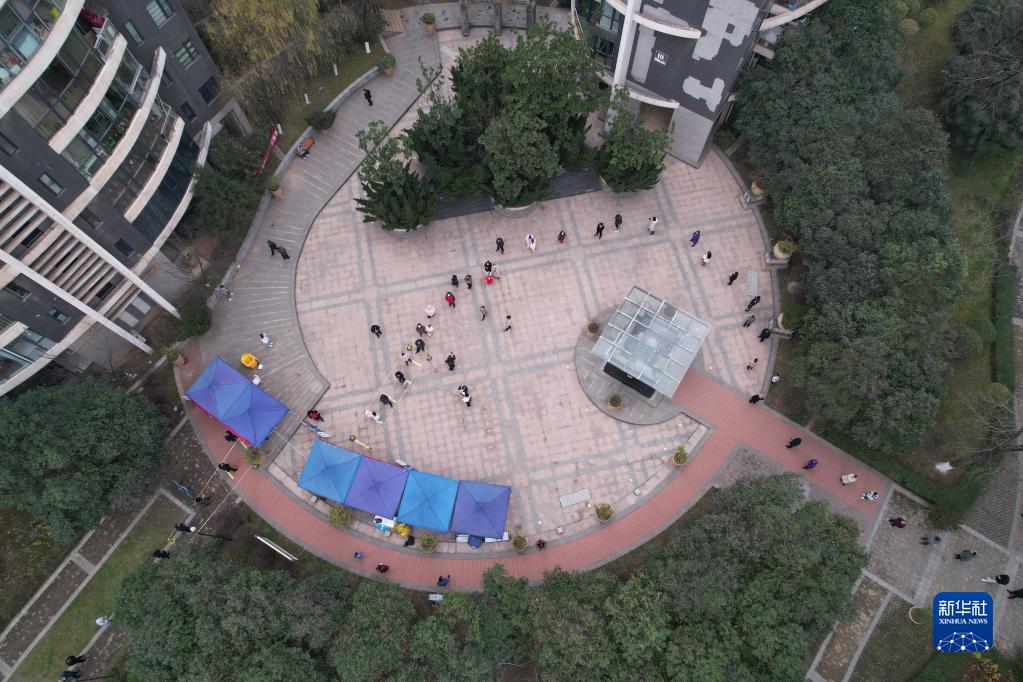 12月23日,在西安一小區(qū),居民排隊(duì)進(jìn)行核酸檢測(cè)(無人機(jī)照片)。新華社記者 邵瑞 攝