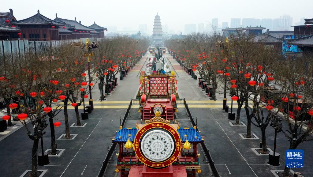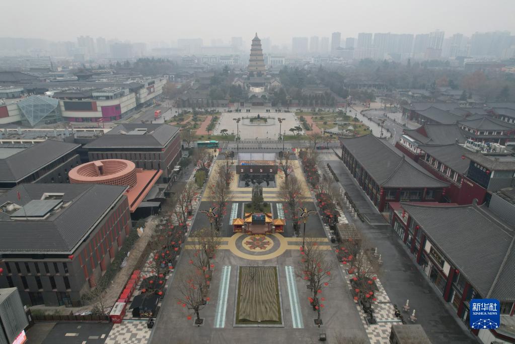 12月23日拍攝的西安大唐不夜城步行街(無人機(jī)照片)。新華社記者 邵瑞 攝
